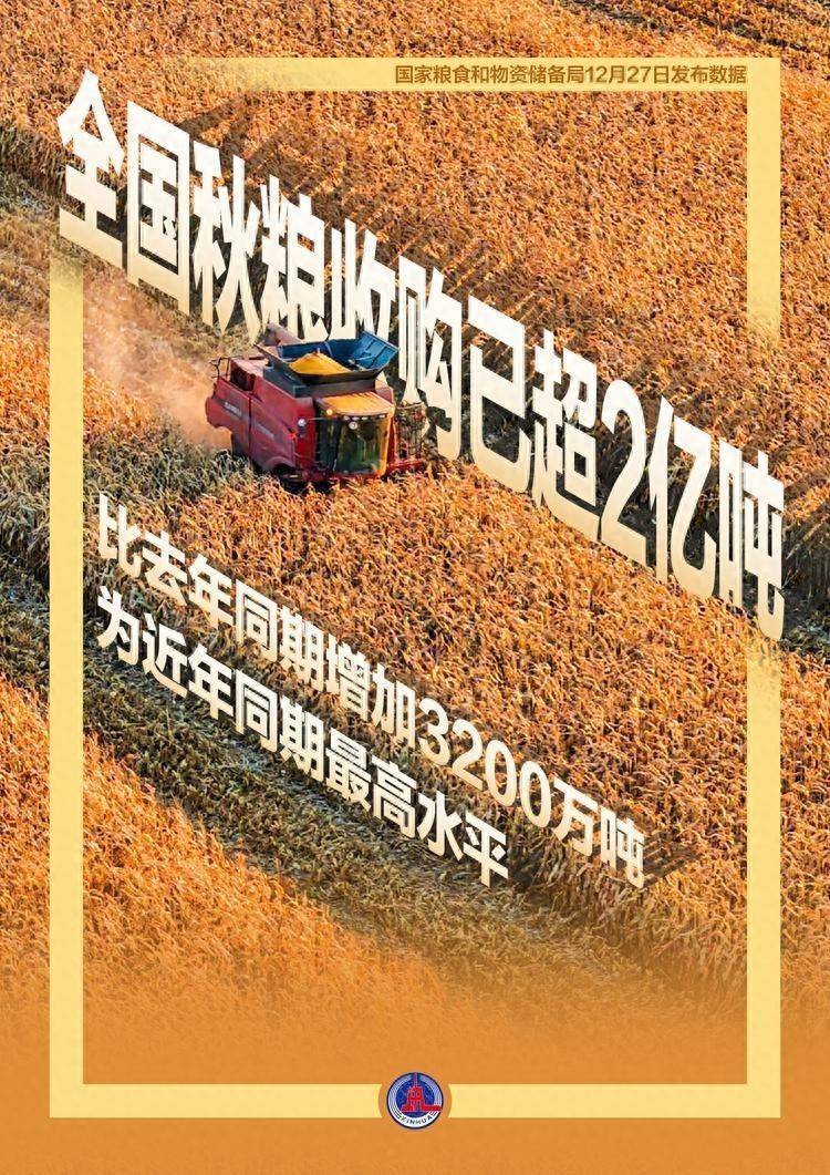 国家粮食和物资储备局12月27日发布数据配资平台金牛,截至目前全国各类粮食经营主体累计收购秋粮已超2亿吨,比去年同期增加3200万吨,为近年同期最高水平。
